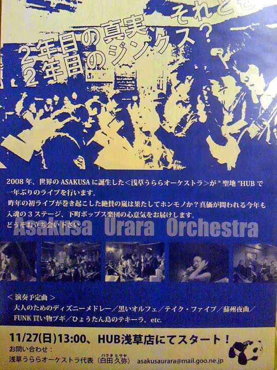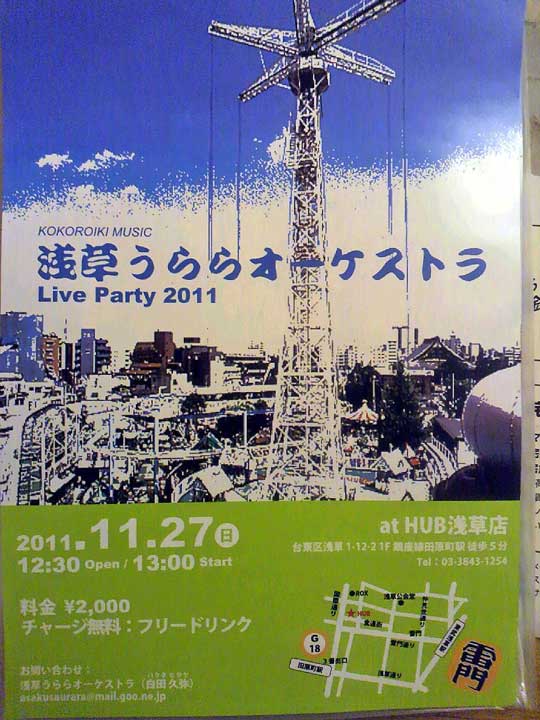 - 12:00- 浅草うららオーケストラ 」http://asakusaurara.web.fc2.com/home.html(bigband) 「あらゆる楽器・個性が集まった、他にはないサウンド