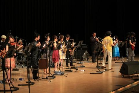 ハーモニカやヴァイオリン、フルートやクラリネットなど、他のビックバンドにはない楽器でもサウンドに参加できるのは氏のアレンジのお陰です。